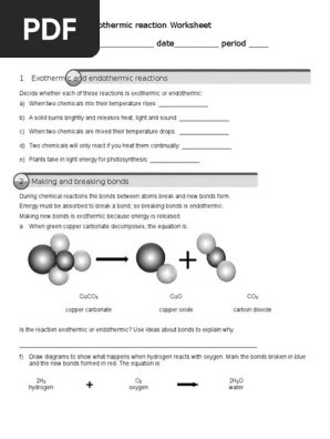 Changes in enthalpy during chemical reactions. Use your answers from questions 1 and 2 to help you write the chemical equation for:. Here we will develop this idea further. Endothermic and exothermic reaction worksheet. During chemical reactions the bonds between atoms break and new bonds form.
